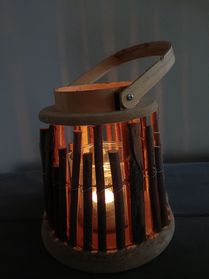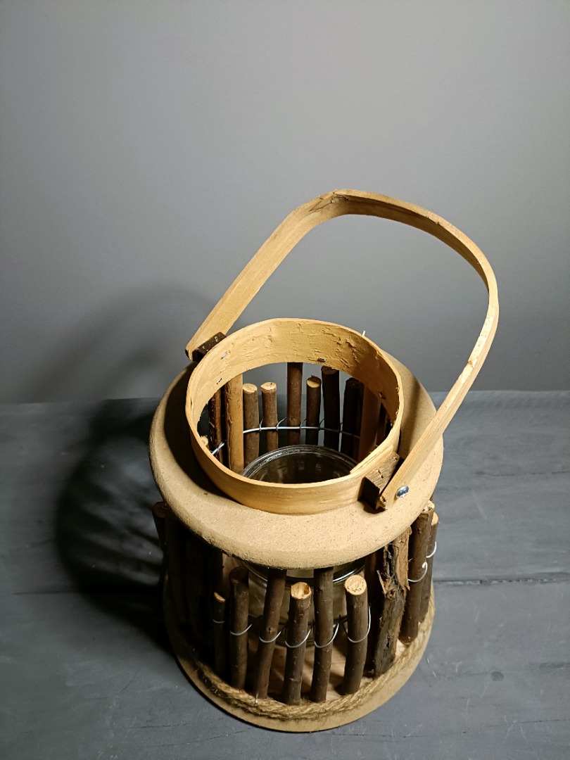 Deze ronde lantaarn met takken is gemaakt voor wie houdt van natuurlijke materialen, rustige tinten en sfeervolle verlichting. De buitenkant bestaat uit zorgvuldig geplaatste wilgentakjes die rondom het glas zijn gevlochten. Zodra je een kaars in het binnenste glas aansteekt, ontstaat een prachtig spel van licht en schaduw dat door de takken heen naar buiten straalt. Het zachte, gefilterde licht voelt warm, uitnodigend en bijna betoverend.