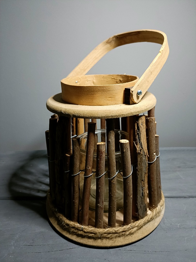 De combinatie van glas en takken zorgt voor een fijn evenwicht tussen lichtheid en stevigheid. Het glas biedt een veilige plek voor een stompkaars of theelicht, terwijl de takken de lantaarn zijn sierlijke, ambachtelijke uitstraling geven.
