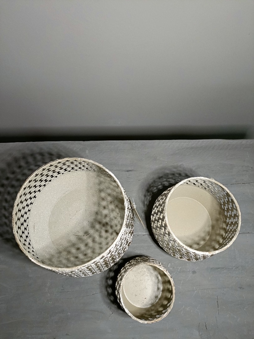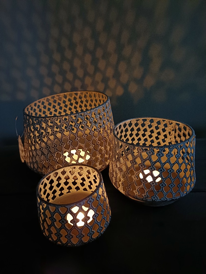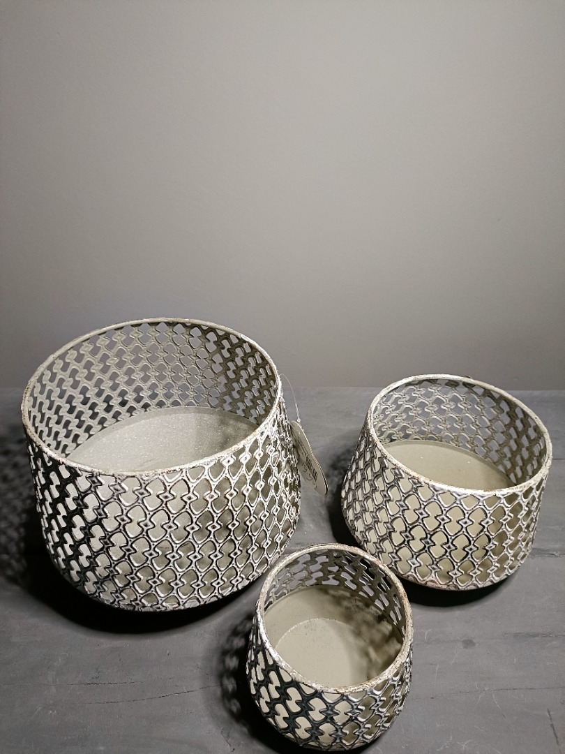 Het metaal heeft een licht verweerde, rustieke afwerking waardoor elk exemplaar net iets anders oogt — alsof ze met de hand zijn gemaakt. Dat maakt deze set uniek en vol karakter, precies wat past bij een sfeervolle woonstijl.