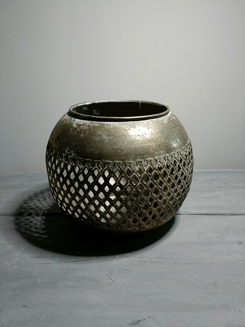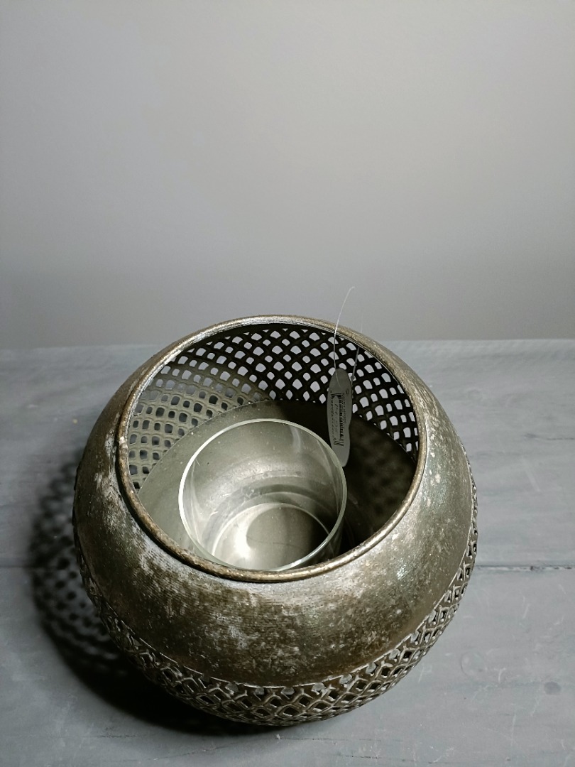 Windlicht bol gold 20x15 is een stijlvol windlicht in een warme goudkleur, ontworpen om een knusse en uitnodigende sfeer te creëren. Met een diameter van 20 cm en een hoogte van 15 cm is dit gouden windlicht een subtiele, maar opvallende toevoeging aan je interieur. De vele kleine openingen in het metaal zorgen voor een zacht verspreid licht dat zich door de ruimte beweegt, alsof het danst op de muren.
