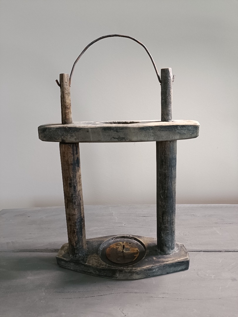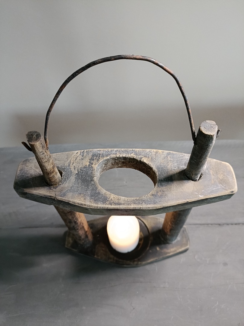 Hoogte hout 27,5 cm met hengsel omhoog totaal 31 cm