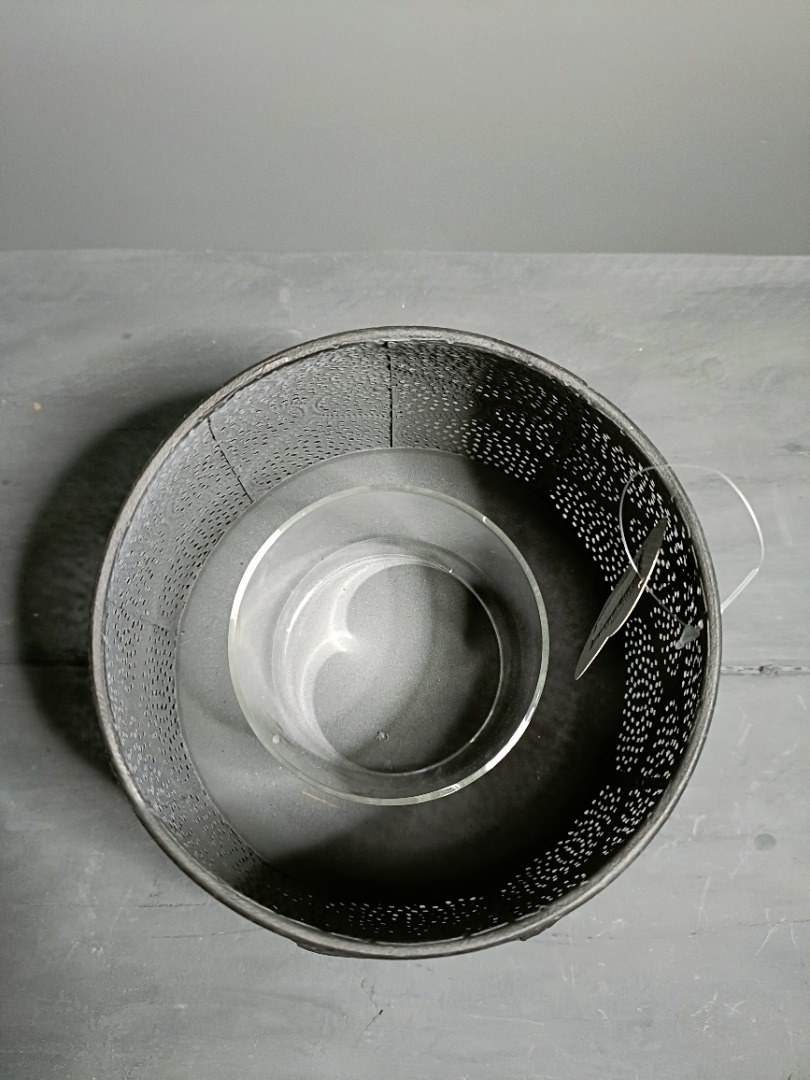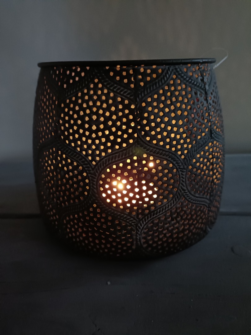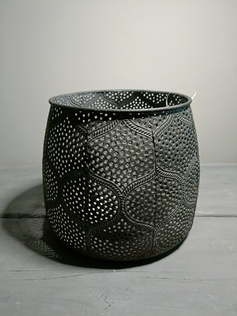 Maroc windlicht 18x15 is een sfeervol windlicht dat direct een gezellige, uitnodigende ambiance toevoegt aan je interieur. Het stevige metalen frame is voorzien van sierlijke, Marokkaans geïnspireerde perforaties die een betoverend licht- en schaduwspel creëren wanneer de kaars brandt. Door de combinatie van robuust metaal en elegante patronen vormt dit windlicht een opvallend decoratief accent dat perfect past bij moderne, industriële of boho-interieurs.
